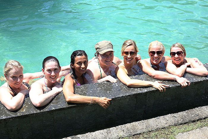 The difference between watching surfers at Teahupoo vs Jaws or Pipeline, is that at Teahupoo the spectators are also the participants, each playing their own game of roulette. There were about 12 boats sitting abstractly close to the breaking wave, each packed with jubilant spectators. There was also a number of support crew for the surfers on high powered jet skis, along with several spectators sitting on surfboards. At one point there was even a helicopter filming the action.